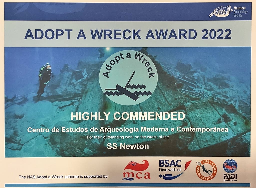 Foi atribuída ao projeto de investigação no navio SS Newton a menção honrosa no âmbito do prémio “Adopt a Wreck Award”, organizado pelo NAS – Nautical Archaeology Society.